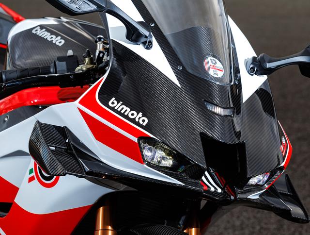 ビモータ「KB998 Rimini」は、Ninja ZX-10RR譲りの強心臓を、2つの異なる素材を組み合わせた独自のフレームに搭載したスーパースポーツモデル。この記事では、その高い性能と美しさを秘めた各部装備と、気になる足つき性についてお伝えします。